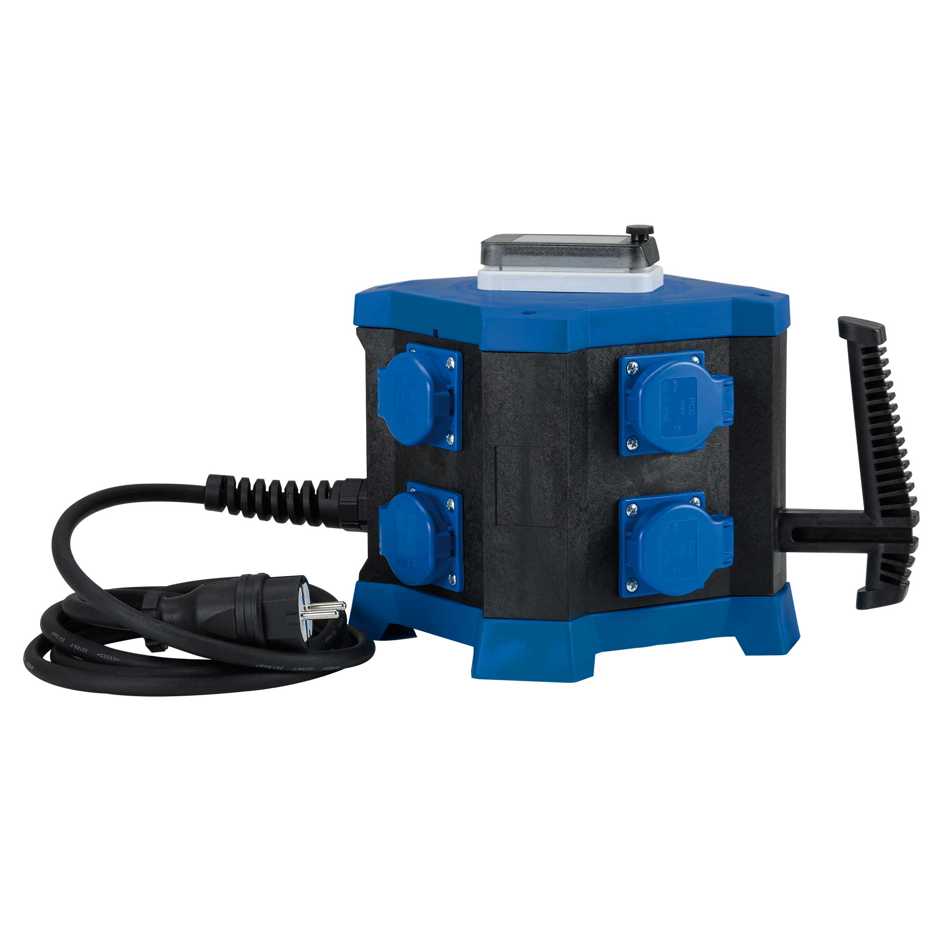 Der mobile Steckdosenverteiler HEDI m.STATION ist für Anwendungen gemacht, bei denen mehrere Verbraucher sicher und übersichtlich an einer zentralen Einspeisung betrieben werden sollen. Das Gehäuse aus glasfaserverstärktem Kunststoff ist auf den rauen Alltag in Handwerk, Industrie und Service ausgelegt. Für den mobilen Einsatz sorgt ein großzügig dimensionierter Tragegriff, während Ober- und Unterseite mit vier Standfüßen aus Gummimaterial für sicheren Stand, Dämpfung und Schutz auf empfindlichen Untergründen sorgen.
